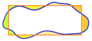 How to estimate the area of the upper illustrated shape? Very easy. Just fill the rectangle with the given area, just by eye. Because we have a well-trained sense of proportion in our “eye.” See below